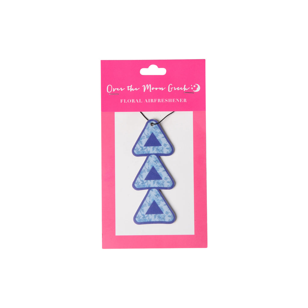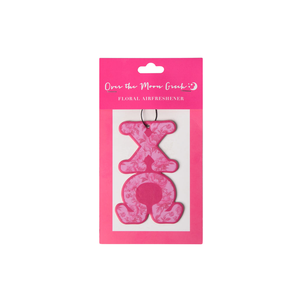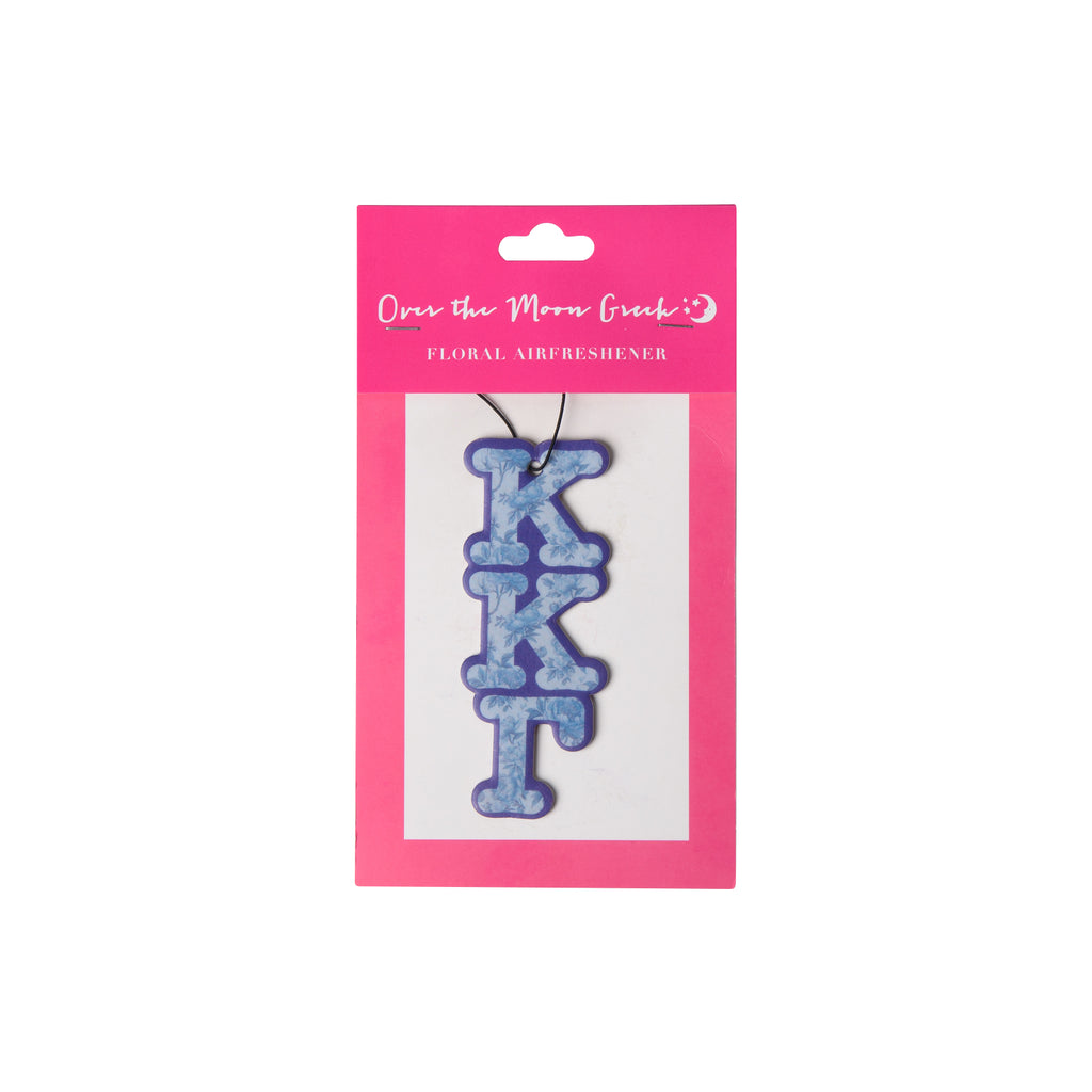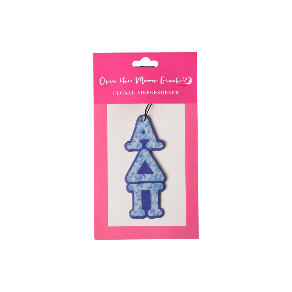 Introducing the Sorority FLORAL Air Freshener - the perfect way to bring some "fresh" to your car or room. This unique air freshener features a delicate floral scent and your sorority's greek letters, adding a touch of personality to any space. A fun and fresh way to show off your sorority pride!